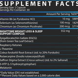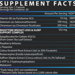 Vitamin B6 (as Pyridoxine HCl),Selenium (as Selenomethionine),Chromium (as Chromium Picolinate),Epigallocatechin Gallate (EGCG) (from Green Tea Leaf extract),Raspberry Ketones,L-Theanine,Coleus forskohlii Root Extract (std. to 20% Forskolin),Rutaecarpine (Evodia rutaecarpa)(fruit),Saffron Stigma Extract (Crocus sativus) (std. to 2% Safranal),5-HTP (L-5 hydroxytryptophan),Melatonin