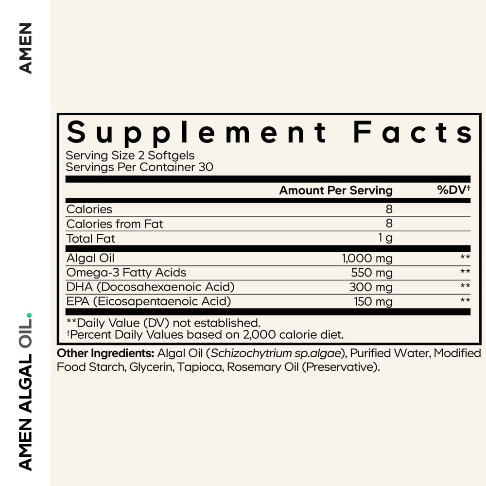 Amen Algal Oil fits easily into routines where individuals want omega support without the taste, sourcing concerns, or dietary restrictions sometimes associated with fish based products.