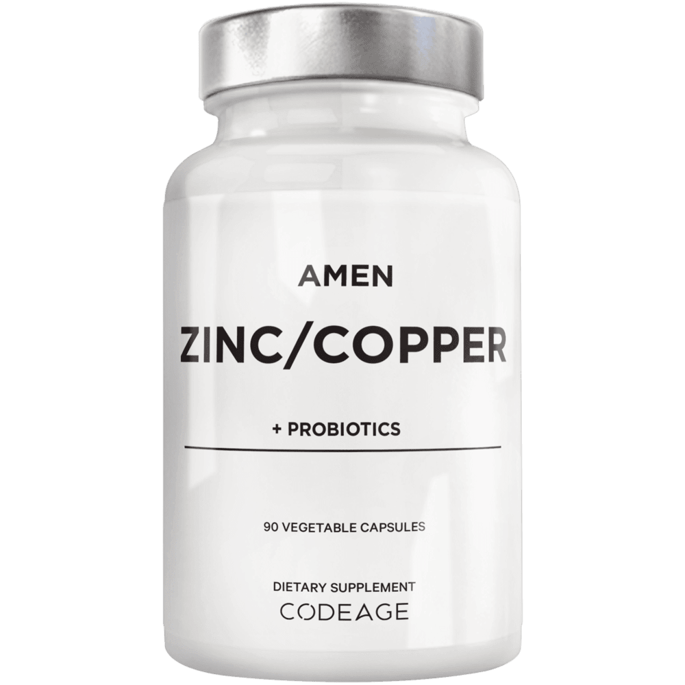 Codeage Zinc + Copper Probiotic supplement provides 50 mg of zinc as zinc picolinate and copper as glycinate chelate, combined with 2 billion CFUs of probiotics per serving to help support immune function, metabolism, and overall wellness.*