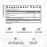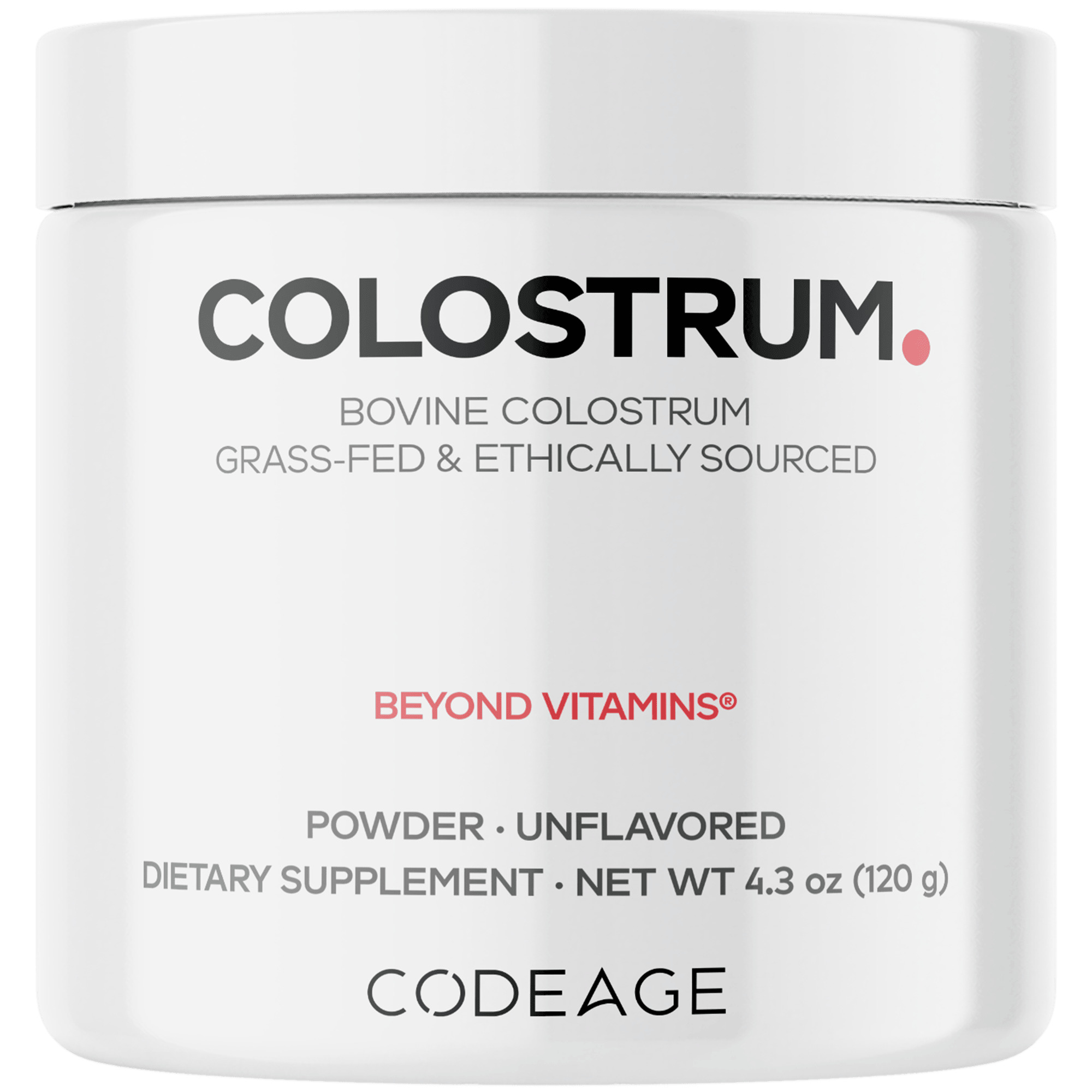 BOVINE COLOSTRUM Codeage Bovine Colostrum Powder is sourced from grass-fed, grade-A US dairy farms, offering 1000mg of bioavailable and unflavored colostrum powder per serving. Colostrum, the first milk produced by mammals after birth, is known for its nutrient profile and immunoglobulins. Cold-chain pasteurized to help preserve its nutritional content. Each bottle provides a 4-month supply.