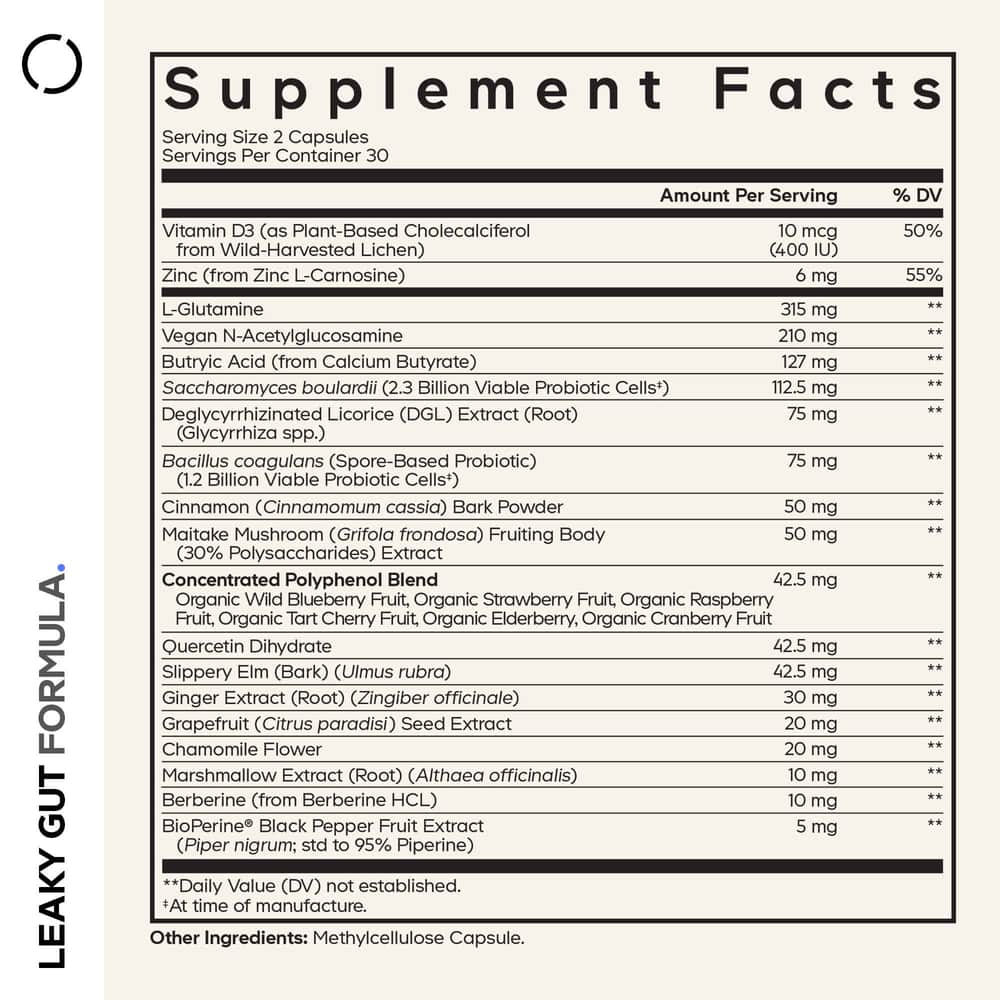 This leaky gut supplement also contains probiotics and quercetin, supporting a healthy gut microbiome and overall digestive function.*