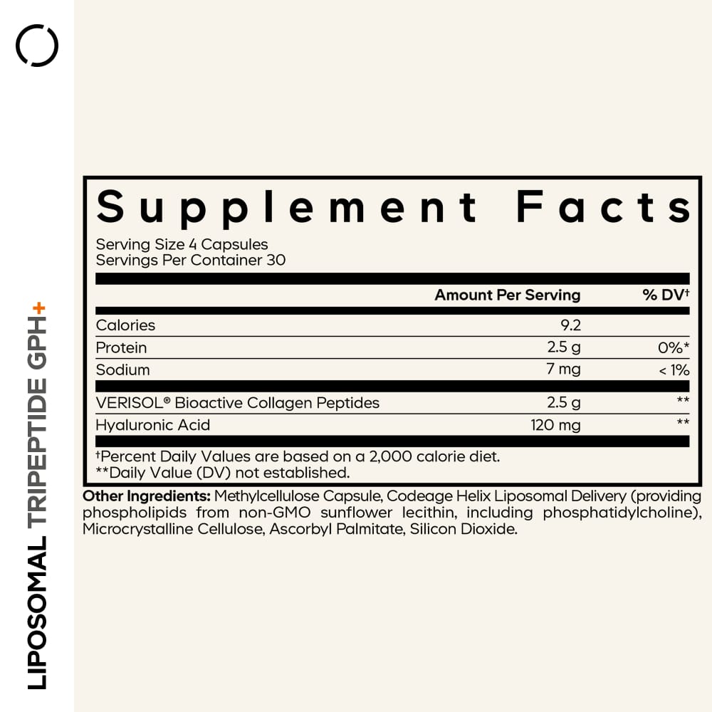 Codeage Liposomal Tripeptide GPH Plus is a capsule based dietary supplement formulated for adults who want to incorporate targeted peptide nutrition into their daily wellness routine. This product features the tripeptide glycine proline hydroxyproline, a naturally occurring collagen derived peptide, delivered in a liposomal format.