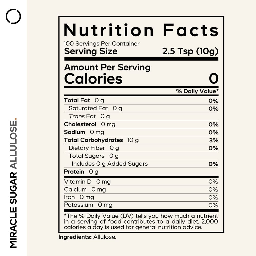 Codeage Miracle Sugar Allulose Powder is a granulated sweetener designed for individuals who want an alternative to traditional sugar for everyday use. Allulose is a naturally occurring rare sugar found in small amounts in certain fruits and foods and is commonly used as a sugar substitute in cooking, baking, and beverages.