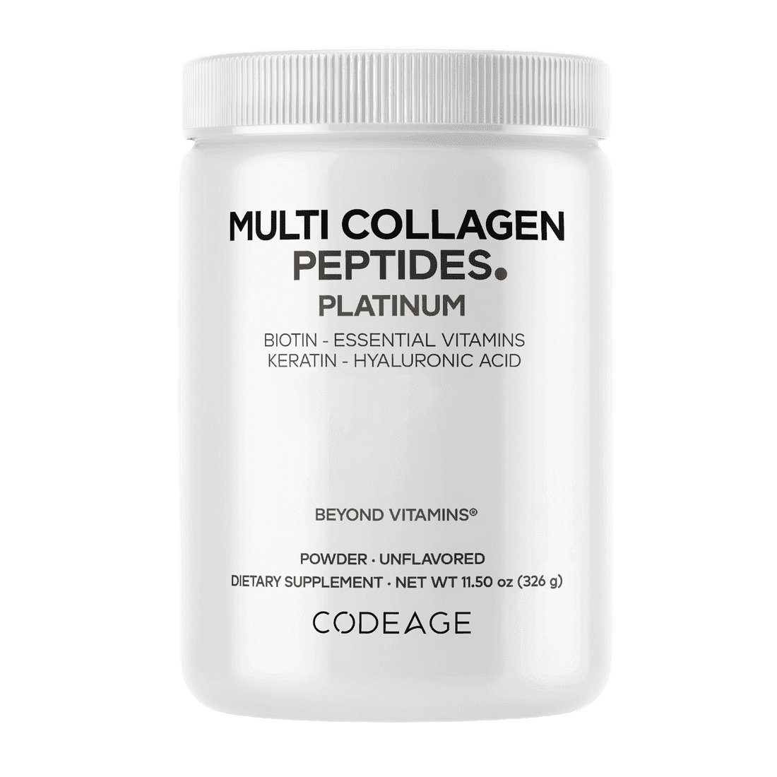 Collagen peptides are derived from different sources to provide a broader collagen profile. Codeage Platinum Multi Collagen Peptides combines multiple collagen types in a single formula to support consistent intake without the need for separate products.