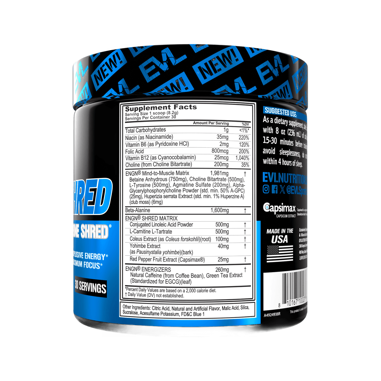 The formula features caffeine for clean, noticeable energy along with ingredients commonly used in fat burning supplements such as L Carnitine and green tea extract. These compounds are often included to support metabolism and help the body use stored fat for energy. ENGN Shred also includes beta alanine, which is known for supporting muscular endurance during tough sets, circuits, or conditioning work. This combination makes it more than just an energy drink style pre workout. It is positioned as a performance and shred support formula.