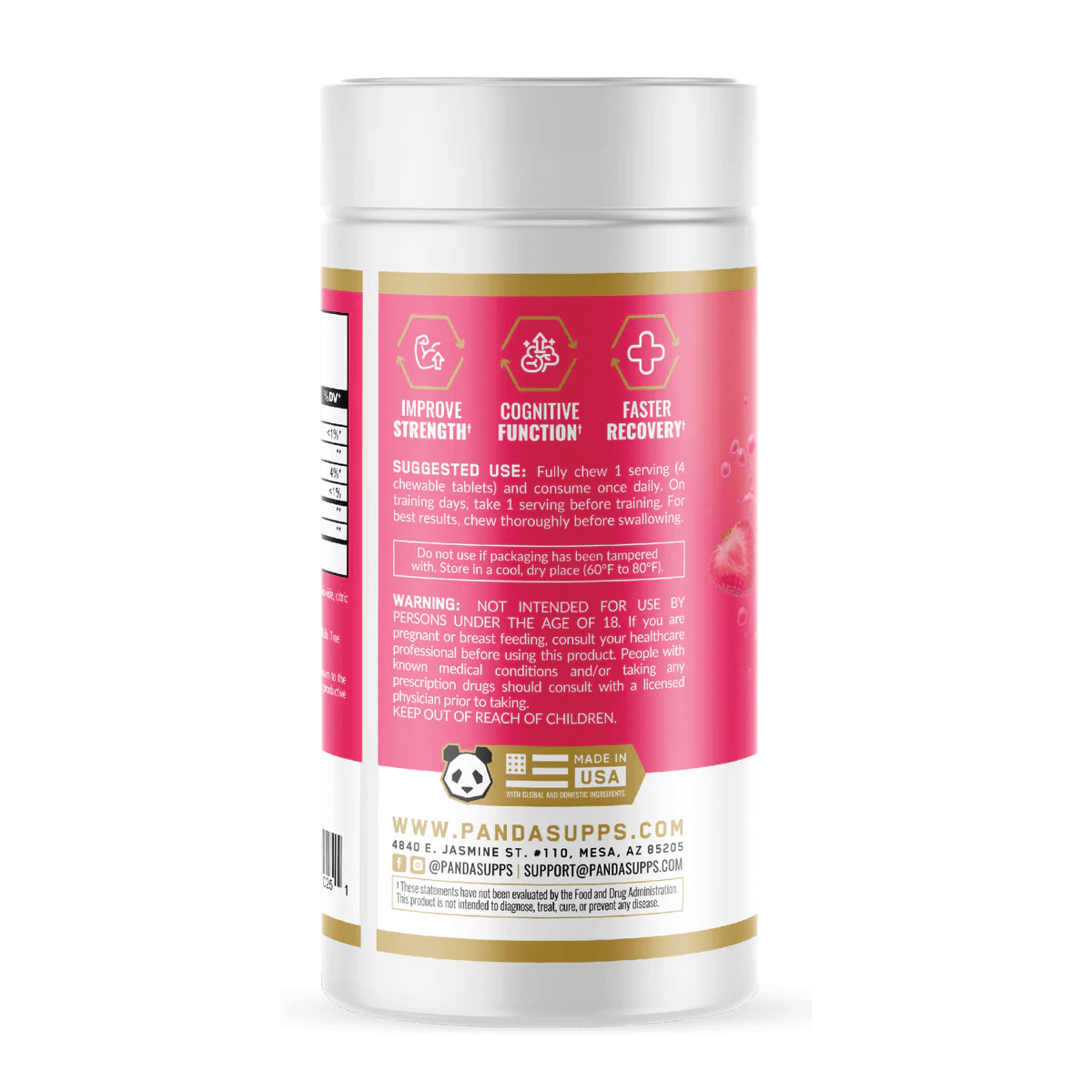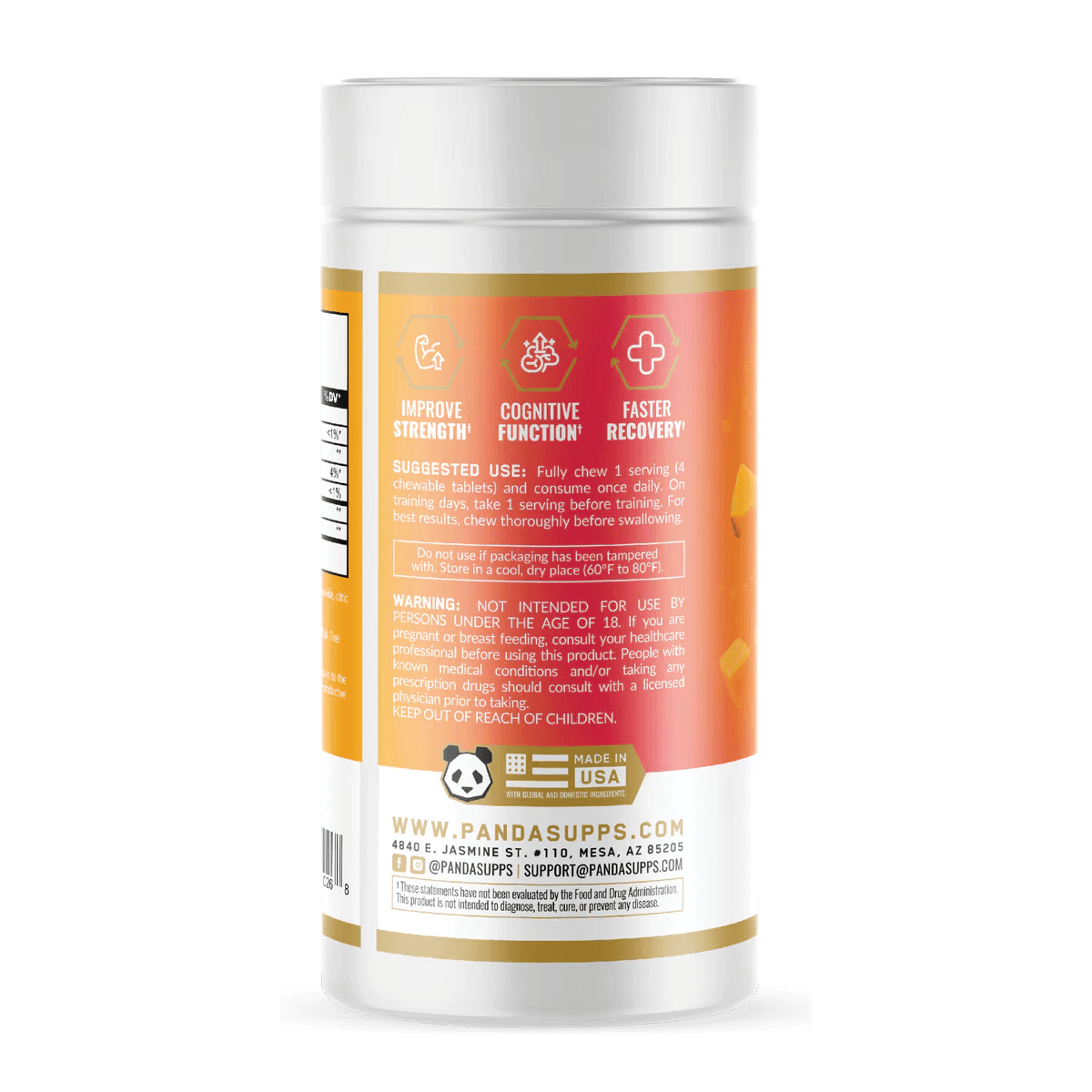 Panda Supps Creatine Bites deliver a full 5 gram serving of premium creatine monohydrate in a convenient chewable tablet format that requires no mixing or shaker bottle. This format makes it easy to take your daily creatine dose whether you are at the gym, at work, or on the go. Creatine monohydrate is one of the most studied and trusted performance nutrients in sports nutrition and is widely recognized for its role in supporting strength, power, and explosive performance.