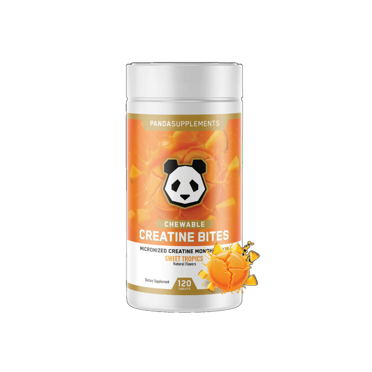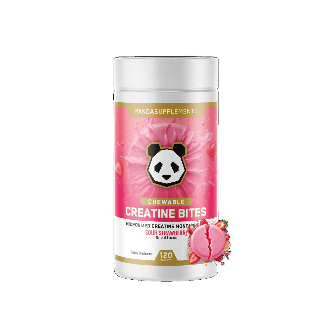 Panda Supps Creatine Bites are chewable and portable, making them an ideal alternative to traditional powder creatine supplements. The chewable format removes the need for mixing, bottles, or water, offering a simple habit to help support consistent daily intake. Available in flavors like Sour Strawberry and Sweet Tropics, these bites combine performance benefits with easy use and versatility.