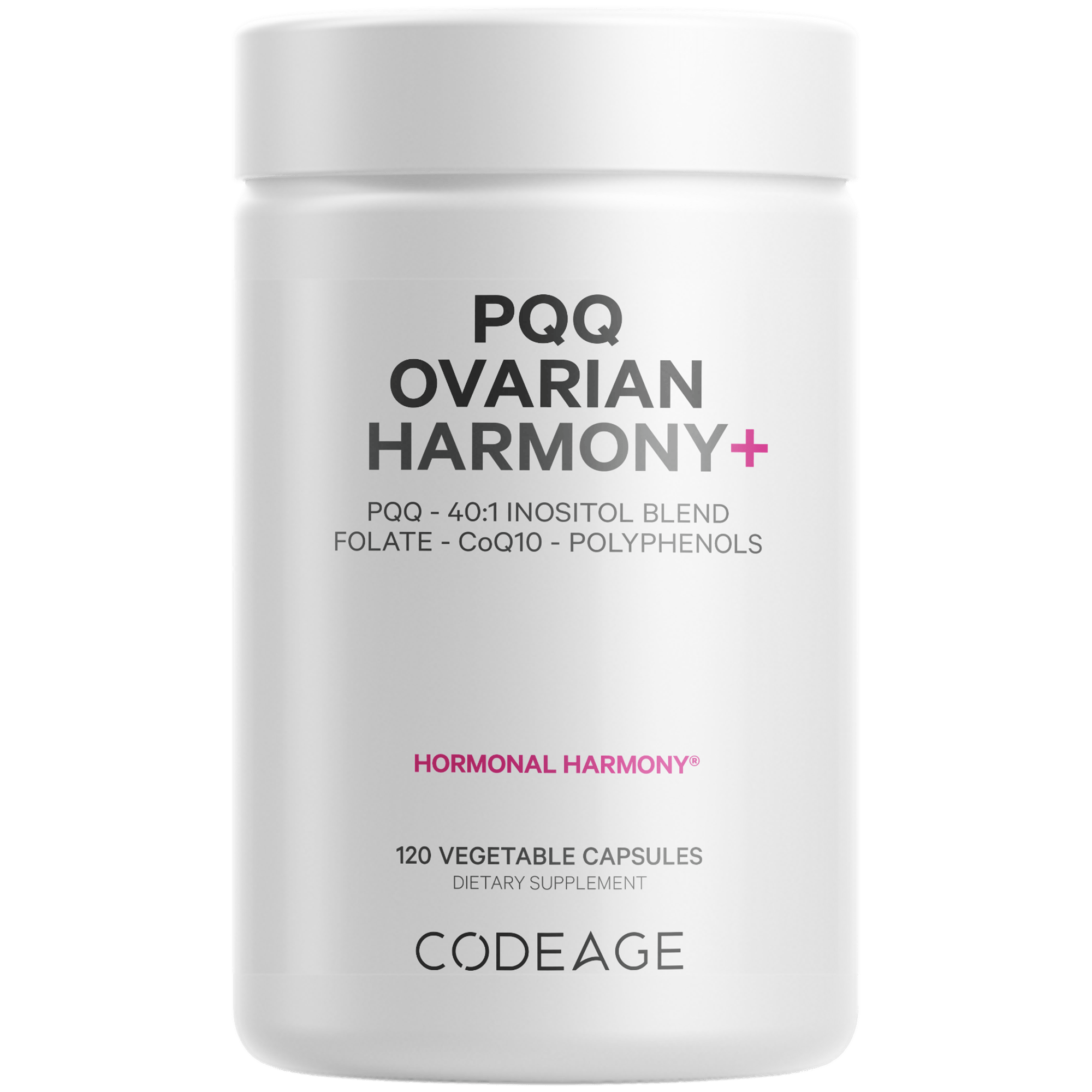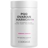 โข Codeage PQQ Ovarian Harmony+ combines Pyrroloquinoline Quinone (PQQ) with Myo-Inositol and D-Chiro-Inositol.