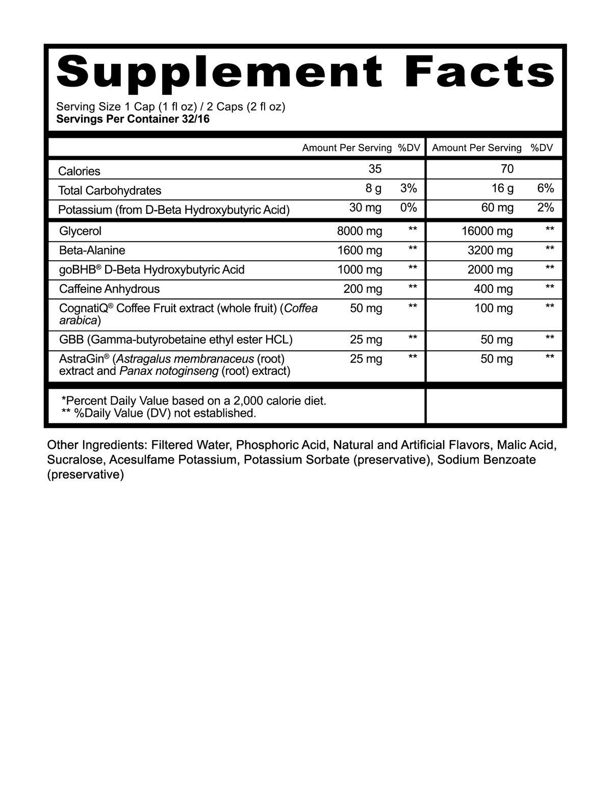 This liquid formula delivers a stack of performanceโfocused ingredients to support endurance, energy production, and cognitive clarity. Caffeine provides sharp, energizing support to help drive motivation and help sustain effort during hard workouts. Betaโalanine helps delay fatigue by buffering lactic acid, while goBHB ketones are included to help support metabolic energy. A high dose of glycerol helps draw water into muscle cells for enhanced hydration and pump sensation. Additional components support cognitive focus and nutrient absorption so your body can take full advantage of key performance nutrients when you need them most.