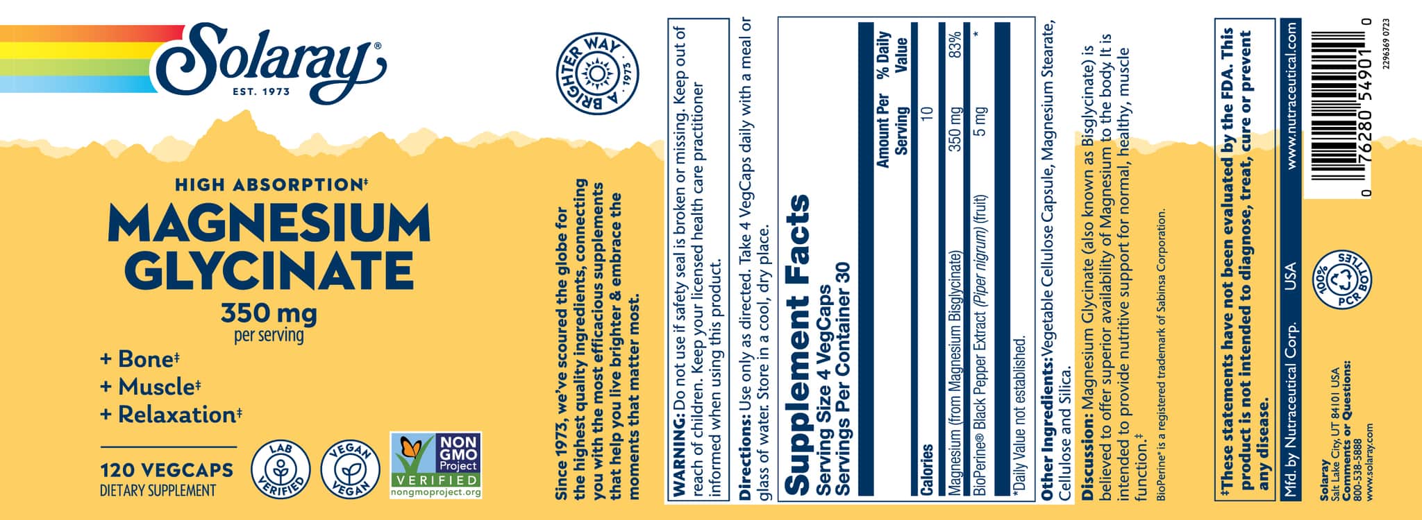 Solaray Magnesium Glycinate is a dietary supplement formulated to provide magnesium in a chelated glycinate form as part of a structured daily nutrition routine. Designed for adults seeking dependable mineral intake, this product reflects a straightforward approach to supplementation focused on consistency, quality, and ease of use.