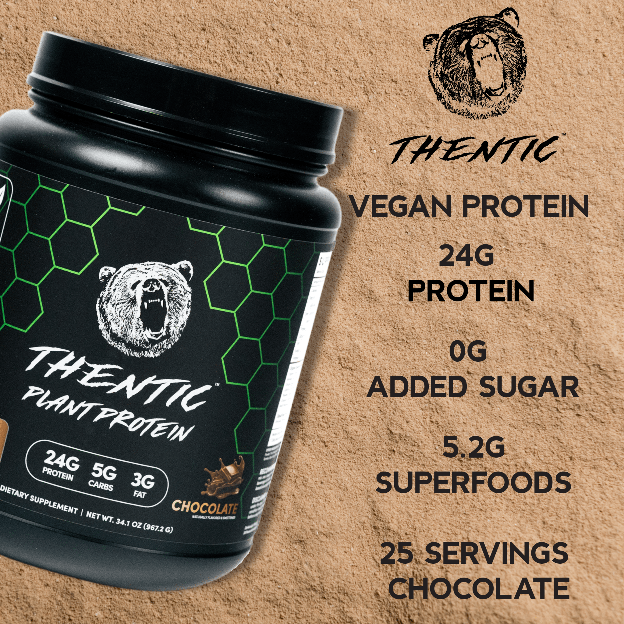 SUPPORT MUSCLE GROWTH & RECOVERY: Thentic’s plant protein powder contains 24 grams of Pea Protein and 5.8g of BCAAs, helping you improve muscle health and recover after every workout.