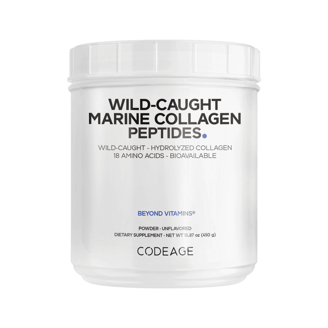 Codeage Wild-Caught Marine Collagen Powder delivers hydrolyzed collagen from sustainable deep-water white fish sourced from North American cold waters, providing types 1 and 3 collagen for optimal support.*